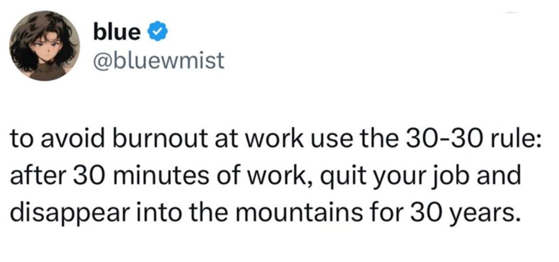 Burnout for me lately feels like I’m in an elevator that doesn’t ever stop on a floor. It’s just hurtling through space with no end goal.