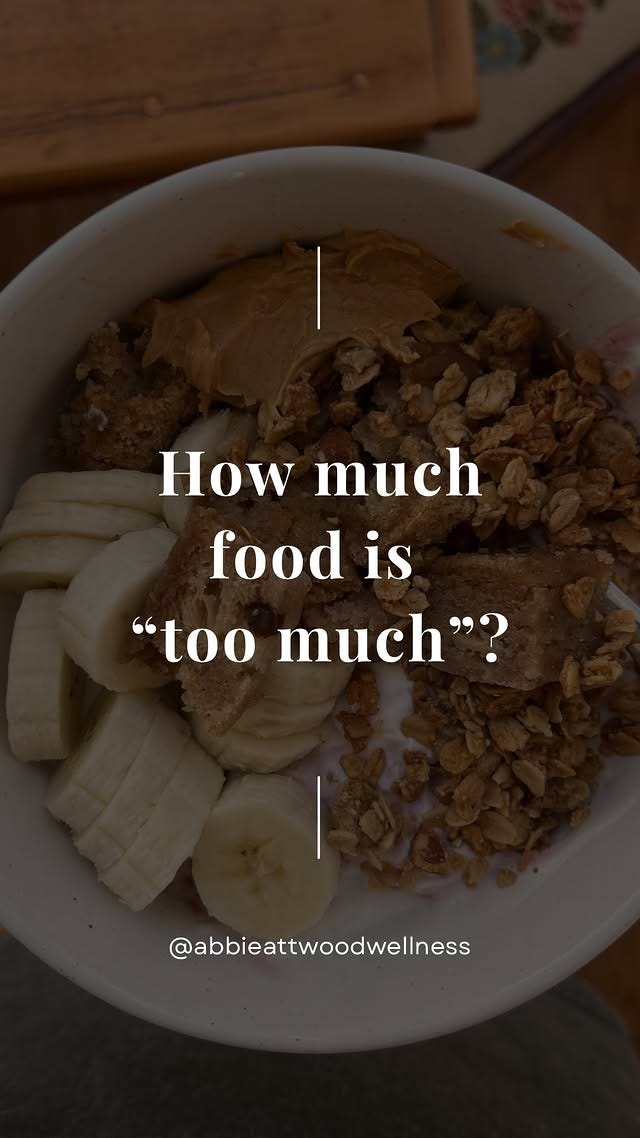 Maybe it’s a bowl of oatmeal that feels huge in the morning because you’re tired and your stomach is sensitive. Maybe it’s seconds at dinner because you’re recovering from a long day. Maybe it’s a sandwich with extra peanut butter that feels “too much” only because you’ve been conditioned to measure pleasure against guilt. Or maybe it’s eating beyond comfortable fullness — a completely normal human experience that is often demonized, even in “intuitive eating” spaces. Eating past what feels comfortable doesn’t mean you’ve done something wrong; it simply reflects that fullness is fluid, and there is no way of knowing exactly when we’re done.